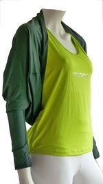Modèle original 100 % brésilien : le Gilet - Jupe 2 en 1 - Vert Militaire est un petit boléro très léger en jersey magique... vous comprendrez mieux lorsque vous l'aurez en main ! Extra léger, soyeux, il est aussi magique par son usage car vous pouvez le transformer en jupette en le nouant autour de la taille avec ses manches pour cacher quelques formes autour des hanches.Taille unique, il convient à toutes les femmes aussi pour le fitness ou le yoga entre deux cours ou pour accessoiriser votre danse. Le débardeur fluo ne fait pas partie du boléro.Recommandé pour :Fitness, Danse, Yoga, PilatesLes Plus du Produit :Son utilisation deux en unSa matièreComposition :88.6 % de polyamide et 11.4 % d'Elasthanne