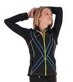 La Veste Fitness, Danse et Yoga Néon est sans capuche mais recèle d'astuces pour un confort optimum. Grâce à son matériaux innovant, elle régule le degré d'humidité. En outre, un soufflet au dos permet d'évacuer la transpiration tout en apportant une jolie ligne. Elle conviendra autant aux femmes qui affectionnent les activités cardio que les moments zen. Le design est particulièrement recherché pour ce modèle noir avec des sur-coutures plates multicolores fluo qui forment un dessin sur l'avant et l'arrière tout en évitant tout frottement inutile. On apprécie également les poches avec zip de fermeture. Et l'atout complémentaire de cette veste sport polyvalente : si vous souhaitez la porter pour du vélo en extérieur ou simplement protéger vos mains du froid, les manches sont munies d'un passage pour le pouce et le col d'un revers de protection du menton. C'est la veste technique et fashion par excellence. Du très haut de gamme !Recommandé pour :Fitness, Yoga, Danse, VéloLoisir