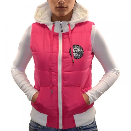 Us Marshall Veste ? Capuche Femme Veste sans manches pour femmes Us Marshall mod?le A4020 Couleur Rose Blanc En Solde Us Marshall Veste Sans Manches