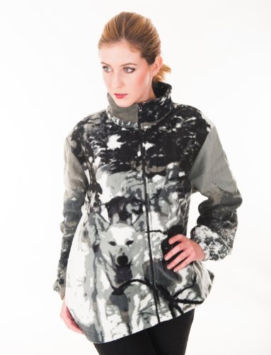 Northgate St, veste polaire femme avec chiens de traineaux imprimés, polyesther, manches longues, fermeture éclair et poches. Une veste tres chaude pour vous ou en cadeau